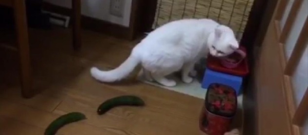Ipak, ne postoji nijedan snimak na kom se mačke uplaše kada vide krastavac iz daljine, nego samo kada ga ugledaju iznenada.pak, ne postoji nijedan snimak na kom se mačke uplaše kada vide krastavac iz daljine, nego samo kada ga ugledaju iznenada.