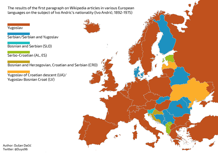 Шта Википедије на европским језицима кажу у првом параграфу о пореклу и националности Иве Андрића?