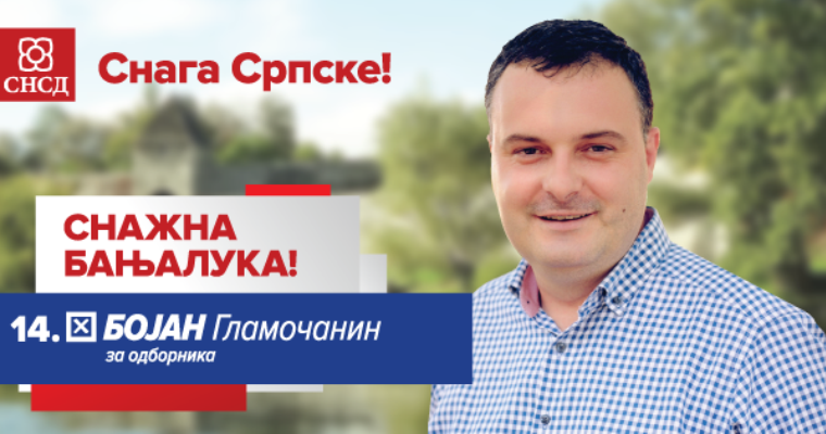 Glamočanin: Banjaluka 20 godina nakon završetka rata, imperativno, mora krenuti u novu fazu razvoja. Banjalučani ne dozvolite da boca piva vrijedi više od vašeg glasa. Ako glasate za određenog čovjeka na listi onda znate koga ste obavezali i od koga očekujete rezultate. Ja sam tu na listi SNSD-a pod brojem 14.
