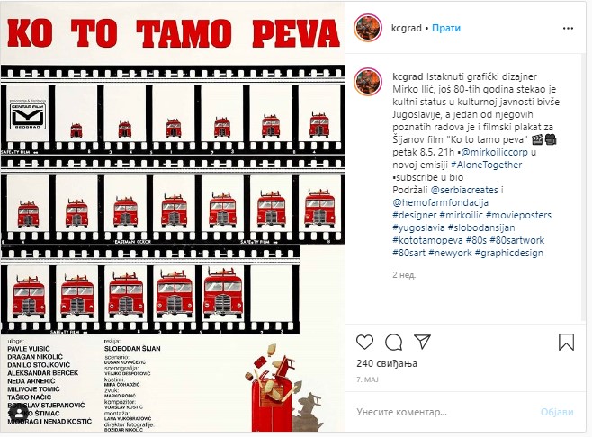 Jedan od njegovih najpoznatijih filmskih postera je onaj za ostvarenje Slobodana Šijana, “Ko to tamo peva”.