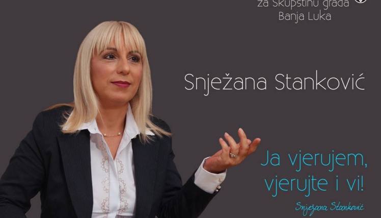 Snježana Stanković: Po činjenici da sam jedina žena u Gradu Banja Luka koja se odlučila da samostalno djeluje na ovim izborima (a već je objavljeno da grad Banja Luka ima cca 198,000 registrovanih glasača).