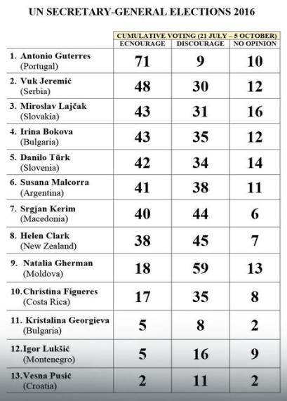Kako komentarišete rezultat koji ste ostvarili u trci za generalnog sekretara UN?