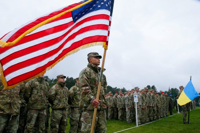 Pripadnici američkih i ukrajinskih oružanih snaga tokom ceremonije otvaranja jedne vojne vežbe u kampu blizu Javoriva, 20. septembar 2021. (Foto: Reuters/Gleb Garanich)