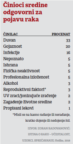 Ovo su ključne poruke knjige "Istina o raku – učestalost, uzroci, sprečavanje" Zorana Radovanovića, profesora epidemiologije u penziji. Autor ove knjige bio je šef Katedre i upravnik Instituta za epidemiologiju Medicinskog fakulteta u Beogradu, predsednik Savezne komisije za zarazne bolesti SFRJ, generalni sekretar Saveza lekarskih društava, osnivač i predsednik Lige za imunizaciju, radio je u Kuvajtu, bio konsultant na Harvardu. Sada je predsednik Etičkog komiteta Srpskog lekarskog društva i član Akademije medicinskih nauka SLD. Poznat je i kao neumoljiv borac protiv antivakcinalnog lobija.