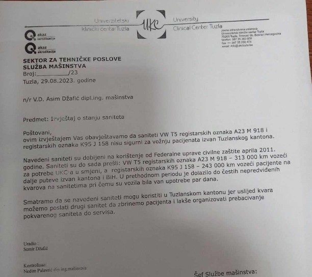 Nedostatak onkoloških aparata tek je jedan od problema UKC-a Tuzla koji još nema ni tehnički ispravno sanitetsko vozilo.