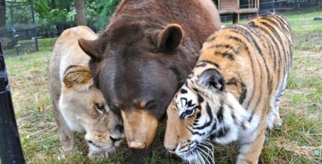 Balu, Leo i Šer Kan su najbolji prijatelji već 13 godina i tu nema ništa čudno osim toga što su oni lav, tigar i medvjed. Ove tri životinje, koje se nalaze u Noa Ark prihvatilištu za životinje u Džordžiji, bile su spasene od dilera droge koji ih je držao kao kućne ljubimce.