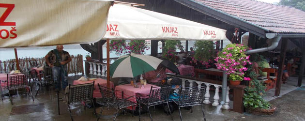ga, a gdje drugo nego u kafani (u bašti pojedini gosti iako natkrivena, za