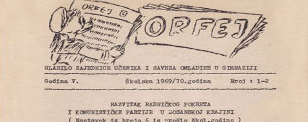 aktivnosti. Četiri godine prije, 1965., pokrenut je i list Gimnazije – “Orfej”.
