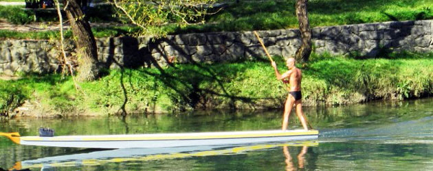 Đera neumorno „gura“ čamac prema Gradskom mostu, tu se „vrte“ i dvojica