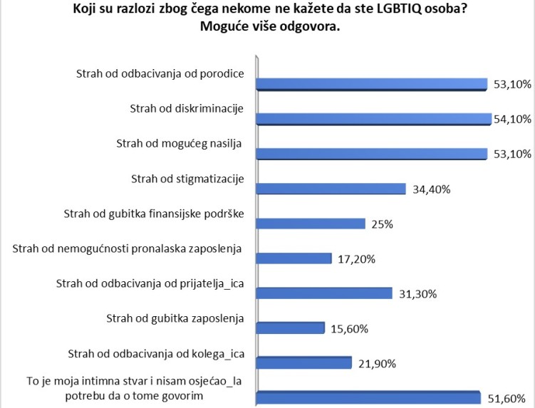 Nažalost, ovakva istraživanja potvrđuju da svakodnevni život LGBTIQ populacije i dalje prožima strah i nesigurnost u svim aspektima, kako u privatnom tako i u javnom životu.