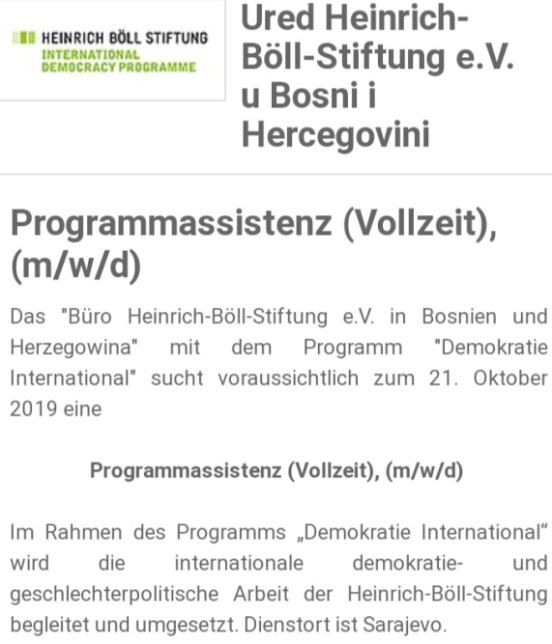 Printscreen: Konkurs za upražnjeno radno mjesto objavljen na stranici posao.ba
