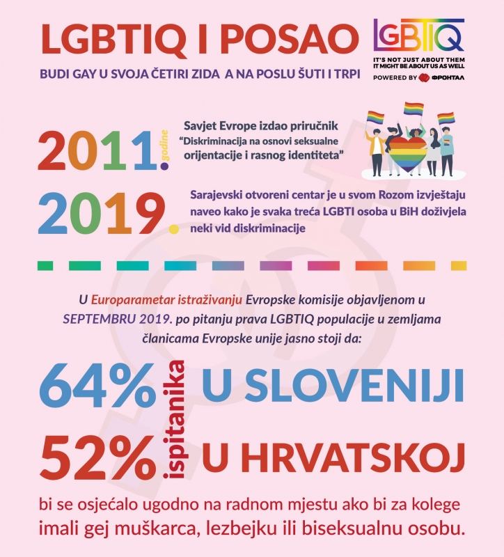 U državi u kojoj je zaposlenje u struci nakon završenog školovanja sve teže naći bez stranačkih veza, u kojoj aktivna radna snaga iz dana u dana napušta svoje domove u potrazi za boljim životom negdje na zapadu, u državi u kojoj žene dobijaju otkaz jer su trudne ili pak ako se žele zaposliti moraju proći niz diskriminatornih pitanja u vezi sa stupanjem u brak i sa zasnivanjem bračne zajednice, LGBTIQ osobe ostaju po strani i u većini slučajeva svoju seksualnu orijentaciju skrivaju od svog poslodavca kako bi dobili i zadržali zaposlenje.