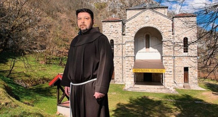 (Fra Ilija Božić ispred Crkve Uznesenja Blažene Djevice Marije u Gornjem Olovu)