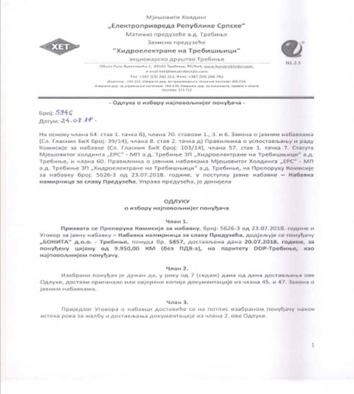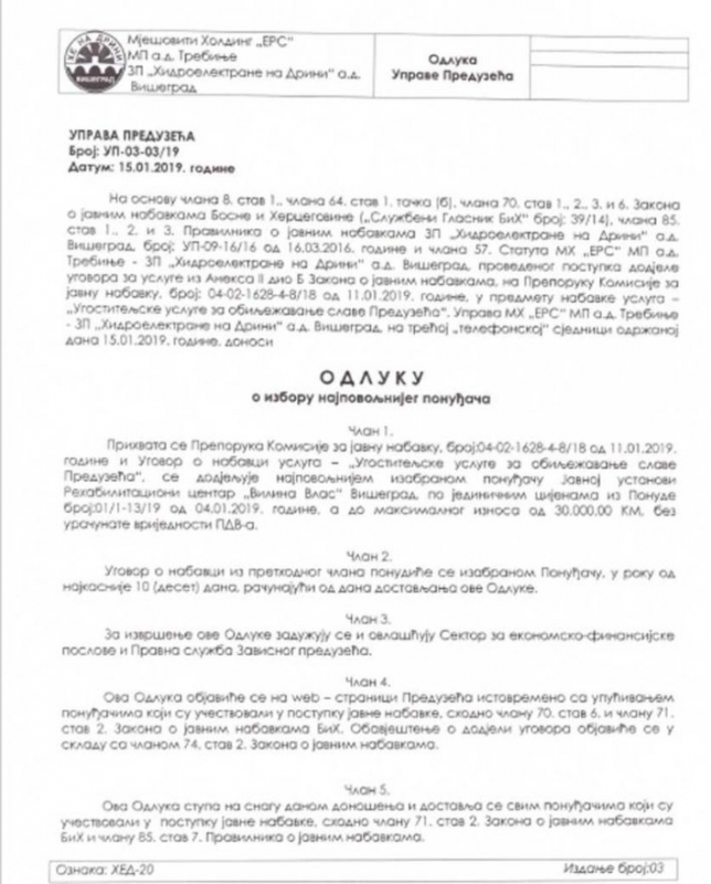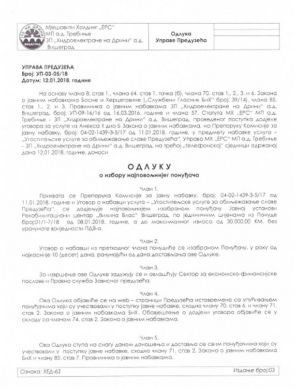 U sklopu tih ugovora bilo je organizovanje krsne slave preduzeća, Nove godine i još nekoliko svečanih događaja. Svaka od ovih proslava odnosila je desetine hiljada maraka iz budžeta preduzeća, čime se uvećavao budžet privatnih firmi koje su učestvovale u cijelom procesu.  Ono što nas je najviše interesovalo jeste da li je neko iz tog javnog preduzeća uzimao procenat, ili neki drugi vid nagrade za namješatnje posla organizacije svečanih događaja iz godine u godinu.