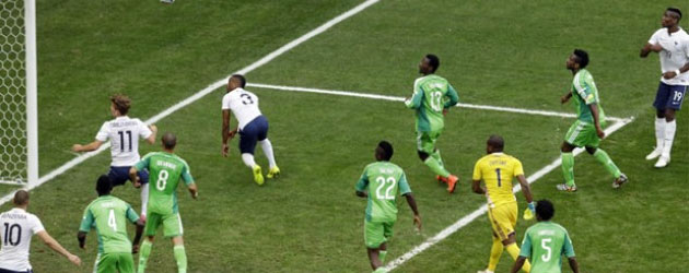 Valbuena je centrirao s lijeve strane, tačno ispred gola lopta je doletjela do Pobge, koji je bio u stopostotnoj šansi, uputio je odličan šut, ali tačno u golmana nigerijske reprezentacije, koji je uspio "ukrotiti" snažan udarac Francuza.