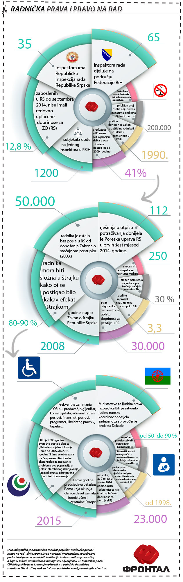 Predstavljeni su izdvojeni podaci dobijeni od zvaničnih institucija i relevantnih sagovornika, a koji su tokom prethodnih osam mjeseci objavljeni u 12 tematskih priča. Cilj infografike jeste kreiranje opšte slike o položaju današnjeg radnika u BiH društvu, dok za tačnost podataka su odgovorni njihovi autori.