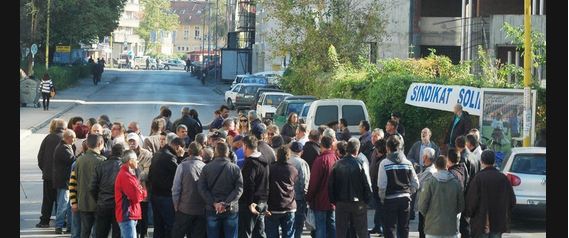 Radnici Konjuha, Dite, Guminga, Borca, Polihema, Poliolchema, ”Aide”… okupljeni oko Sindikata solidarnosti, jednosatnom blokadom raskrsnice tražili su svoja prava.