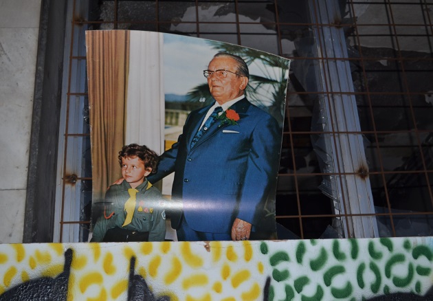 (Fotografija okačena na ulazu u spaljenu zgradu Vlade Tuzlanskog kantona)