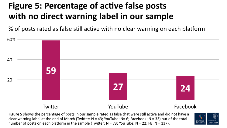 nisu sve medijske platforme jednako reagovale. Na Tviteru, 59% postova koji su u