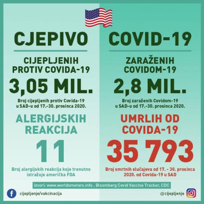 "U ključnim eksperimentima, vakcinisano je 15.000-20.000 ljudi, a isto toliko je primilo placebo. Nijedno ne sadrži stabilizatore, odnosno konzervanse. Obije vakcine umanjuju rizik pobola za oko 95%. Ukupan broj oboljelih među vakcinisanim bio je izrazito malen, svega 10-ak, a svi su imali samo blage oblike bolesti. Nije pouzdano jasno znači li to da će vakcinisani, ako i obole, obolijevati isključivo od blagih oblika bolesti, ali podaci svakako govore u tom smislu", kaže Trkulja.