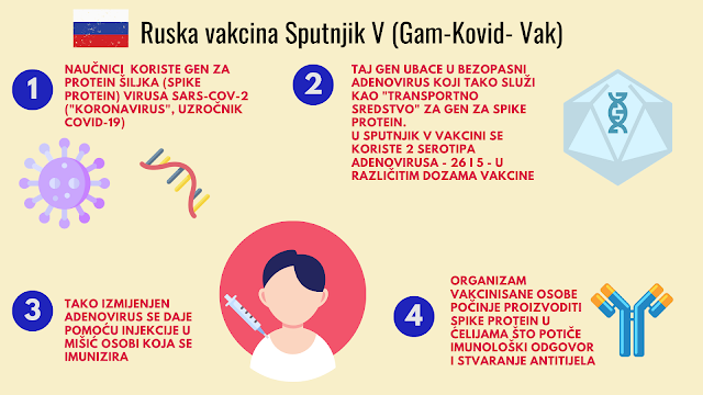 Ruska vakcina Sputnjik V/Sputnik V Instituta Gamaleja bazirana na adenovirusnom vektoru s heterogenim dizajnom ima efikasnost od 91.6% nakon 2 doze. Štiti 100% od komplikacija i teške slike COVID-19 te smrtnog ishoda.