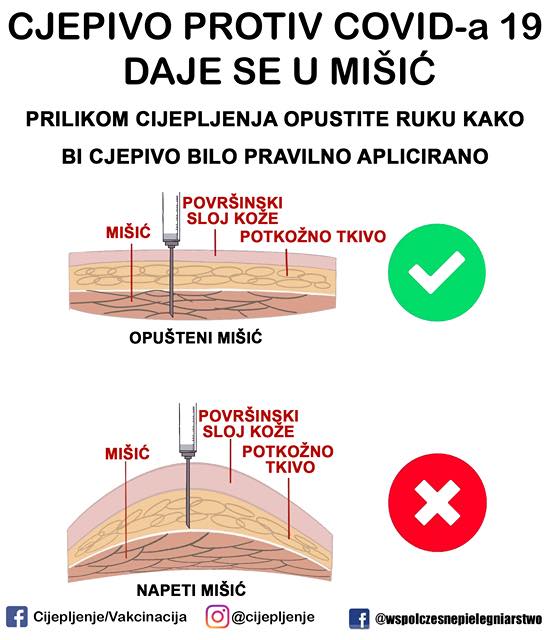 Veoma je bitno opustiti ruku, tj. mišić nadlaktice prilikom davanja, kako bi vakcina išla baš u mišić, a ne pod kožu ili u kožu.