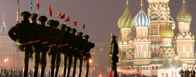 Members of the Russian Alliance of Paratroopers, headed by Gen.