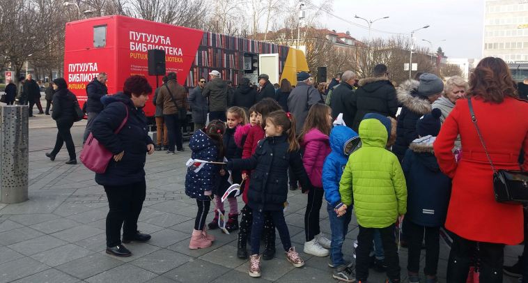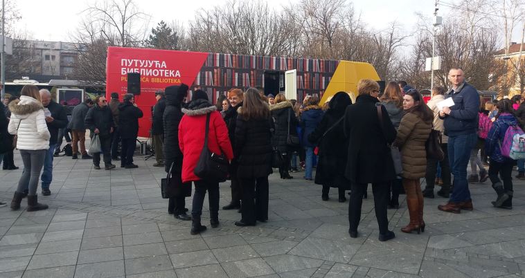 Bibliobus je počeo sa radom u 14h, a ubrzo se okupio veliki broj zainteresovanih građana.