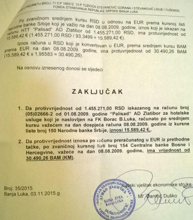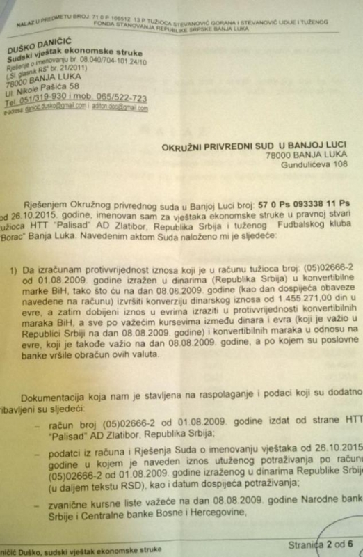 “Problem Borca su dugovi koji klub vuče niz godina, kao i blokirani računi. Samo poreski dug Borca iznosi 11 miliona konvertibilnih maraka. Unazad 17-18 godina nisu plaćani porezi i doprinosi, radnici nemaju ovjerene zdravstvene knjižice, kao i sami igrači na kraju krajeva. Neodgovorno poslovanje bivših rukovodilaca vodilo je do toga da npr. 5-6 trenera i nekoliko igrača koji su ranije dobili otkaz (neki od njih još prije više od deset godina) moraju biti isplaćeni i to u sljedećim ciframa: