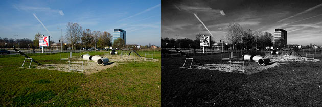 Crno bijeli tonovi kojima psi uglavnom vide svijet oko sebe (iako su načunici utvrdili da mogu da prepoznaju i određene boje) poslužili su nam da vam predstavimo pomenuti park i iz ljudskog ali i iz njihovog ugla.