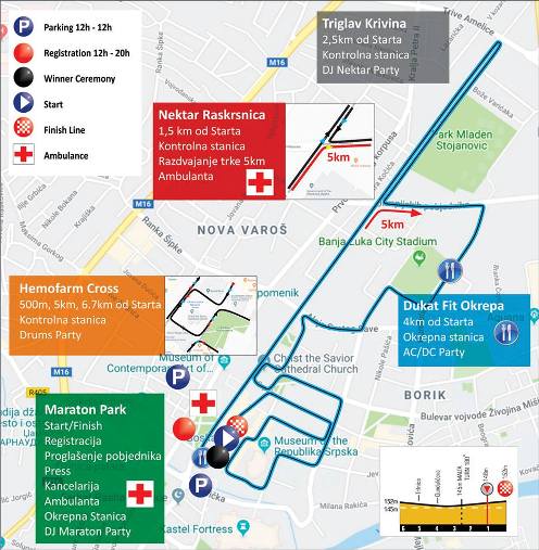 Na Trgu Krajine, gdje su start i cilj, sve prisutne će zabavljati DJ-evi. Program počinje u 17.30 časova trkom djece, a završava oko ponoći.
