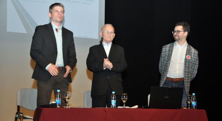 Учесници ове трибине били су српски лингвиста, професор Милорад Телебак и француски хуманитарац Арно Гујон.