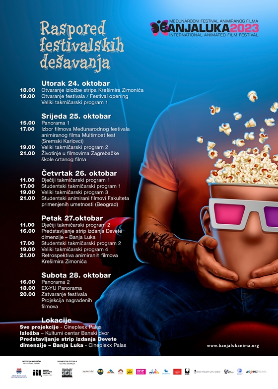 Festival animiranog filma biće otvoren 24. oktobra, a tada će u Kulturnom centru Banski dvor biće postavljena izložba stripova, a tokom Festivala i prikazana retrospektiva animiranih filmova Krešimira Zimonića, veterana tzv. mlade generacije autora Zagrebačke skole crtanog filma.