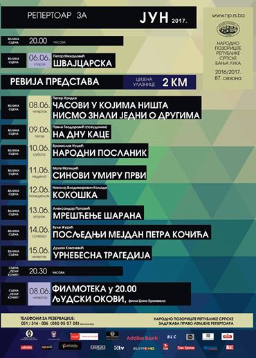 Iz NPRS poručuju da ulaznice za predstave na reviji koštaju dvije marke i da ih posjetioci mogu rezervisati na brojeve telefona 051/314-006 i 080/05 07 08.