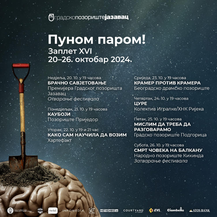 Na repertoaru festivala su i predstave: "Bračno savjetovanje", „Kauboji“, "Smrt čoveka na Balkanu", „Kramer protiv Kramera“…