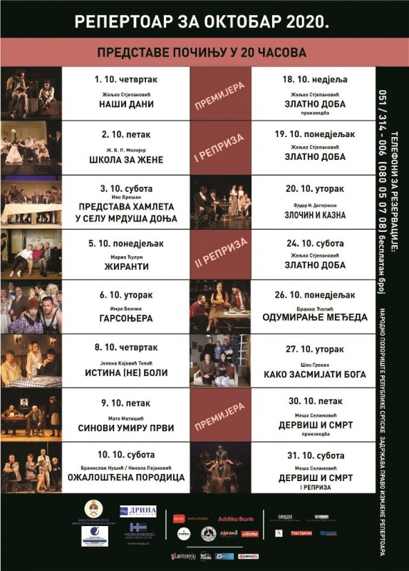 Погледајте репертоар Народног позоришта Републике Српске за октобар 2020.