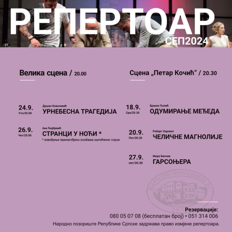 Pogledajte repertoar Narodnog pozorišta Republike Srpske za septembar