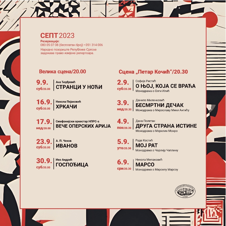 Погледајте репертоар Народног позоришта Републике Српске за септембар.