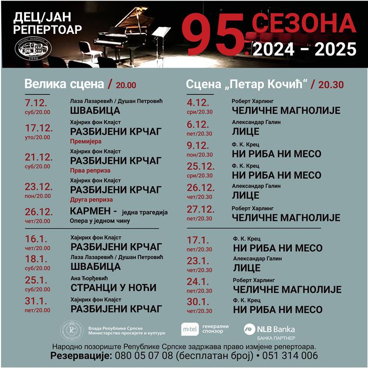 Kultura Manje od min. min. Репертоар Народног позоришта Републике Српске за децембар и јануар (ФОТО) 20.11.2024 FacebookTwitterPinterestWhatsApp Фронтал Popularno ove nedelje BiH Galić: Helezovo ponašanje nedostojno funkcije 05.12.2025 0 Zamjenik ministra obrane u Savjetu ministara Slaven Galić ogradio... BiH UIO: Uslovi za otvaranje novog Graničnog prelaza Gradiška nisu ispunjeni 05.12.2025 0 Uslovi za otvaranje novog graničnog prelaza Gradiška Novi most... Vijesti Dogovoreno povećanje boračkog dodatka u Republici Srpskoj 04.12.2025 0 Osnovica za borački dodatak u Republici Srpskoj biće povećana... Republika Srpska Golubović: Povećanje plata za zaposlene u obrazovanju i kulturi 04.12.2025 0 Ministar prosvjete i kulture Borivoje Golubović najavio je povećanje... Svijet Putin: Rusija predlagala Kijevu da povuče trupe iz Donbasa – Ukrajina izabrala da ratuje 04.12.2025 0 Rusija je predlagala Ukrajini da povuče svoje trupe iz... Teme BiH Galić: Helezovo ponašanje nedostojno funkcije 0 Zamjenik ministra obrane u Savjetu ministara Slaven Galić ogradio... BiH UIO: Uslovi za otvaranje novog Graničnog prelaza Gradiška nisu ispunjeni 0 Uslovi za otvaranje novog graničnog prelaza Gradiška Novi most... Vijesti Dogovoreno povećanje boračkog dodatka u Republici Srpskoj 0 Osnovica za borački dodatak u Republici Srpskoj biće povećana... Republika Srpska Golubović: Povećanje plata za zaposlene u obrazovanju i kulturi 0 Ministar prosvjete i kulture Borivoje Golubović najavio je povećanje... Svijet Putin: Rusija predlagala Kijevu da povuče trupe iz Donbasa – Ukrajina izabrala da ratuje 0 Rusija je predlagala Ukrajini da povuče svoje trupe iz... BiH Vazduh nezdrav u Sarajevu, Tuzli, Banjaluci, Maglaju i Visokom 0 Vazduh je jutros nezdrav u Sarajevu, Tuzli, Banjaluci, Maglaju... Republika Srpska Prevareni kupci moraju platiti još 100.000 KM takse 0 Prevareni kupci stanova u banjalučkom naselju „Novi Borik“ izborili... Politika SDS zatražio skidanje sa “crne liste” 0 V.d. predsjednika SDS-a Јovica Radulović zatražio je, tokom sastanka... Povezani članci Pogledajte repertoar Gradskog pozorišta “Јazavac” Kultura 30.11.2025 Репертоар Народног позоришта Републике Српске за децембар (ФОТО) Kultura 28.11.2025 Autoportret Fride Kalo prodat za 54,7 miliona dolara (FOTO/VIDEO) Kultura 21.11.2025 Филмoви "Џo" и "Eвo гoлa" у Чикагу на 12. Фестивалу српског филма Kultura 17.11.2025 Пројекција филма "Херкул" у режији Марка Дукића Kultura 17.11.2025 Popularne kategorije VijestiSvijetPolitikaRepublika SrpskaSportRegion Previous articlePovodom Svjetskog dana djeteta: Donacija mlijeka za pedijatrijeNext articleZvijezda Granda Dževad Galijašević ili još jedan dokaz da smo postali sjebano društvo?
