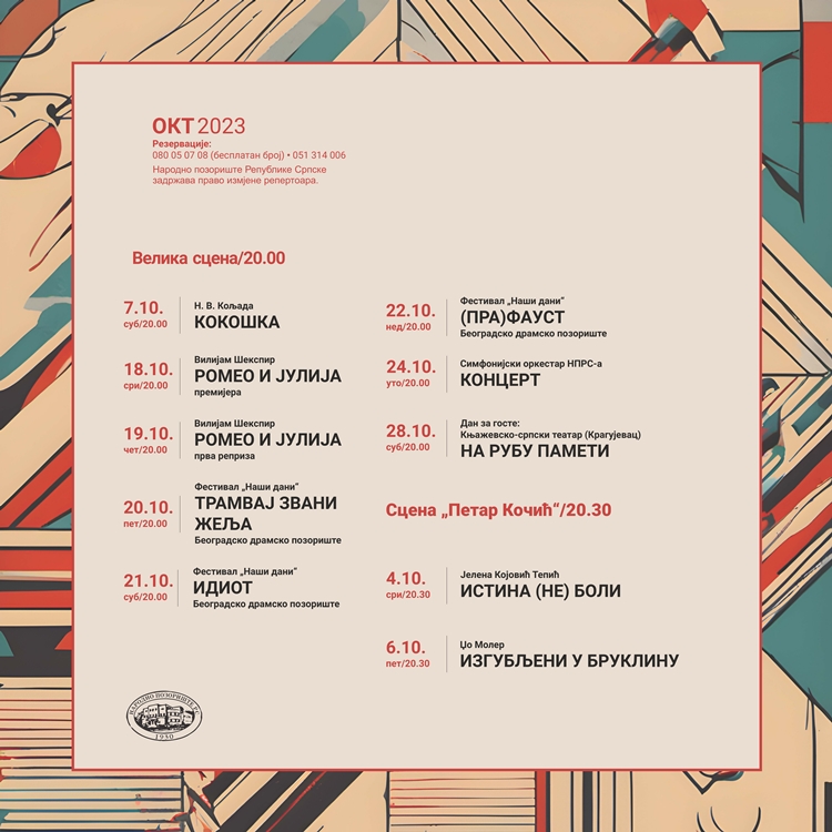 Погледајте које су нам представе припремили у Народном позоришту Републике Српске за мјесец октобар.