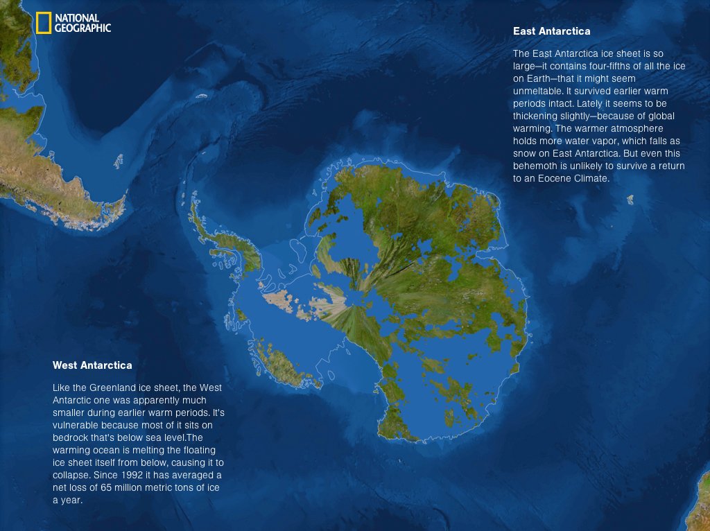a ni led, Antarktik. Ovo je zato što led koji danas pokriva stijenje je zapravo