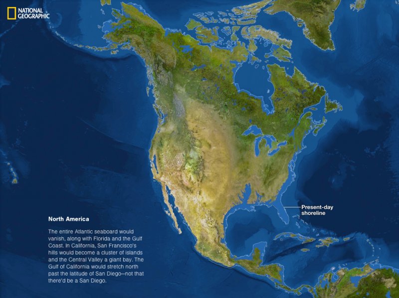 Na ovim prikazima nivo mora je podignut za 216 stopa.