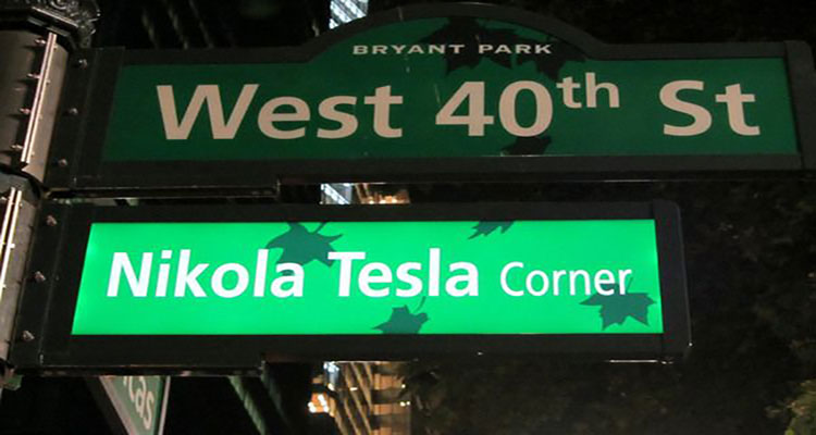 Od 1994. godine, u Njujorku se ugao 40. ulice i 6. avenije, gdje je bila njegova laboratorija, zove Ugao Nikole Tesle.