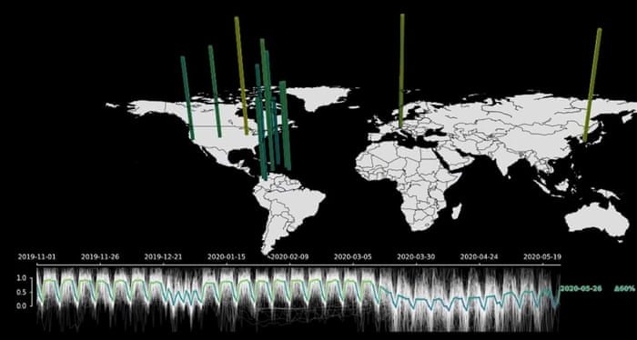 Научници су анализирали трагове из мреже од 268 сеизмичких сензора у 117 земаља и открили знатан пад у буци у 185 њих. Највеће промјене примјећене су у градским центрима попут Њујорка и Сингапура, али су чак и удаљене станице у њемачкој Црној шуми и у Рунду у Намибији тише како је људска активност била умањена.