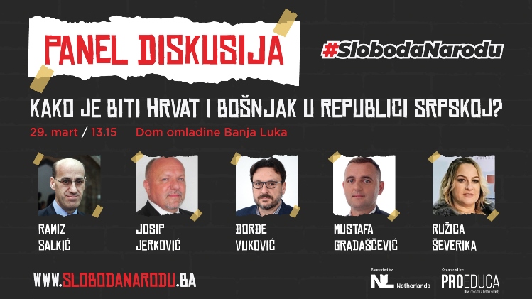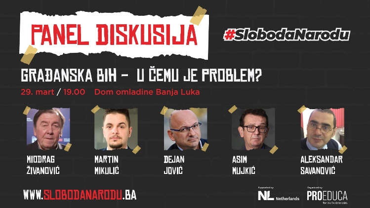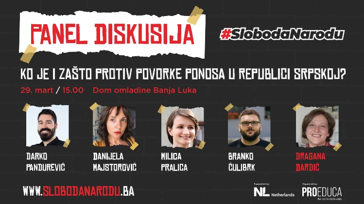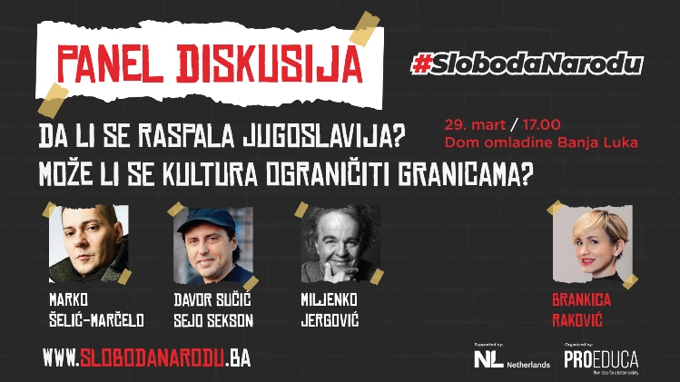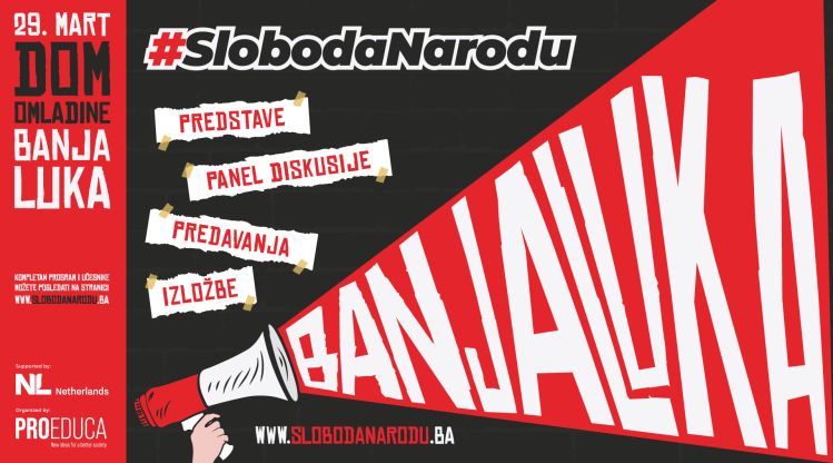 Centar za edukaciju Pro Educa, u saradnji sa Ambasadom Kraljevine Nizozemske u BiH, organizuje prvi Festivalski dan #SlobodaNarodu u Banjoj Luci posvećen ljudima koji se usuđuju da misle drugačije i imaju hrabrosti da o tome u javnosti govore ili da pronalaze drugačije forme izražavanja.