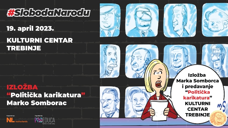 Pored panel diskusija, posjetioci će imati priliku da uživaju u izložbi poznatog političkog karikaturiste Marka Somborca.