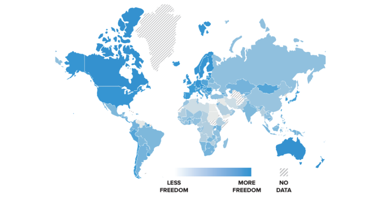 Ovo pokazuje aktuelni godišnji Indeks ljudskih sloboda (Human Freedom Index) koji je objavljen juče i objašnjava stanje u 2017. godini. Najbolje ocjene ostvaruje Novi Zeland, nakon kojeg slijedi Švicarska, Hong Kong, Kanada i Australija. Najgore ocjene po pitanju ukupnih sloboda imaju Irak, Sudan, Jemen, Venecuela i Sirija.
