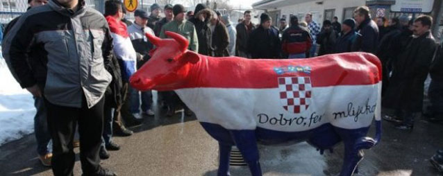 Произвођачи млијека из различитих дијелова континенталне Хрватске за данас нису планирали протестне активности, већ су се окупили на миси у загребачкој катедрали, након чега су грађанима на пијаци Долац подијелили 550 литара млијека.