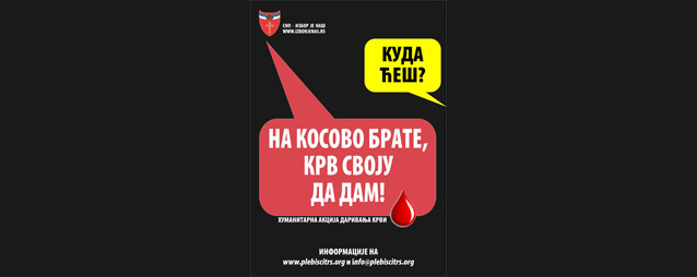 Чланови покрета „Избор је наш“ поставили су у Бањалуци плакате сљедећег садржаја: Куда ћеш? На Косово, брате, крв своју да дам!