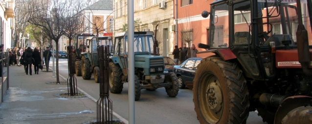 ТРЕБИЊЕ – Радници требињског “Агрокопа” данас су тракторима и другом механизацијом на два сата блокирали улицу испред зграде општине Требиње, изражавајући незадовољство због неисплаћених зарада, као и могућег стечаја фирме, те најавили подизање кривичних пријава против власника предузећа.